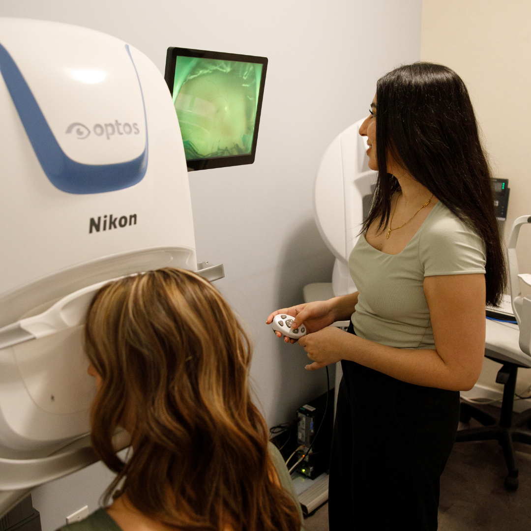 The Optos Monaco combines two highly advanced technologies that allows us to view the retinas at the back of your eyes extremely thoroughly – often without the need for dilating drops!